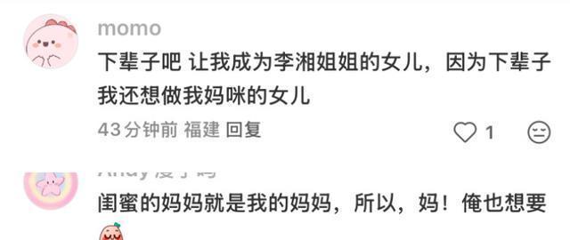 更有网友因为王诗龄平时在网络上平易近人,称她“网络闺蜜”,还在评论区中直言“闺蜜的妈妈就是我的妈妈,妈,我也想要!” 虽说是网友们开玩笑的话,但是能成为李湘的女儿,真的是很幸福的事情。